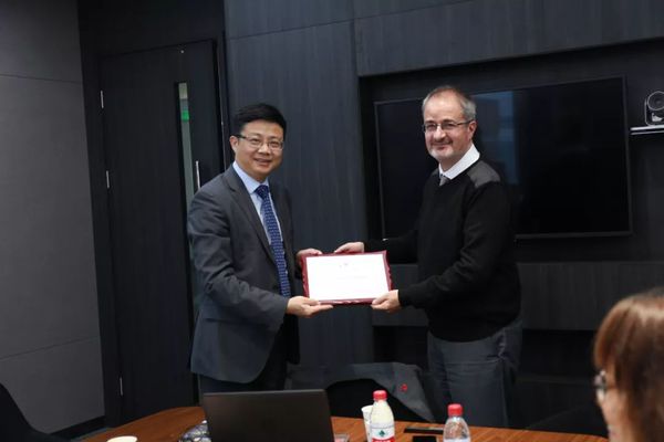讲座最后,亚欧商学院中方院长何佳讯教授为Philippe MONIN 教授颁发纪念奖牌。