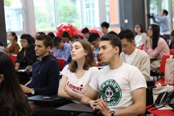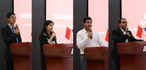 亚欧商学院本科学生代表和法国里昂商学院学生代表发言