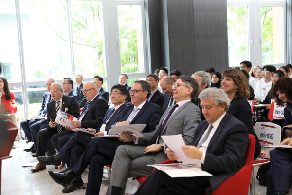 我校党委书记童世骏在致辞中指出,围绕“国际化”重要战略,华东师范大学已与全球200多所学校建立合作伙伴关系,其中最具特色的是与法国里昂地区高校的友好合作。作为华东师范大学和法国里昂商学院在中法教育合作与联合培养人才领域深度合作的结晶,亚欧商学院以培养“具有深厚人文底蕴和社会责任的跨界商才和企业家”为标杆,以高端精品商学院为定位,立足融合中法两校的优势学科,通过全球化、复合型、创新式的专业培养和能力训练,打造勇于跨界开拓、敢于社会担当的栋梁之才。他期待,中法双方继续紧密合作、开拓创新,在“一带一路”倡议下不断拓展项目规模层次、提升项目内涵品质以及优化项目运行机制。