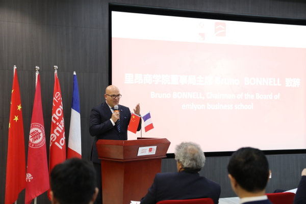 里昂商学院董事局主席Bruno BONNELL在致辞中表示,见证亚欧商学院的成立令他激动万分,高质量的教学环境为学院人才培养提供了有利保障。同时,他也为学院的创办初衷——结合华东师范大学和法国里昂商学院的文化特色与优势,得以实现表示高兴。他殷切希望,亚欧商学院的学生作为学院的第一批先驱者,能够勇于承担责任,传承学院的价值观。