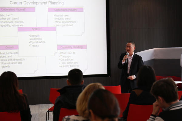 亚欧商学院企业导师、杜邦中国集团有限公司高性能材料事业部大中国区供应链经理刘小光以“新时期下的大学生职业发展规划”为题,为大家做了精彩的演讲。