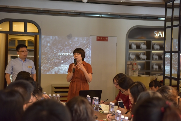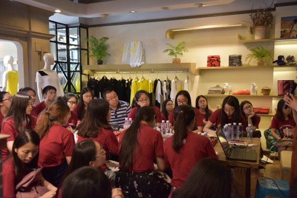 7月7日下午,夏令营营员们来到了位于南外滩老码头的Sand River旗舰店,观摩产品,访谈店长,听品牌创始人郭秀玲谈Sand River发展和国际营销之路,共研品牌前行方向。从国外大牌代工厂到惊艳巴黎时装周的“中国品牌”,Sand River的发展历程给营员们很大的触动和感悟,与创始人的交流沟通更碰撞了思维的火花,启发了多元化的思考。