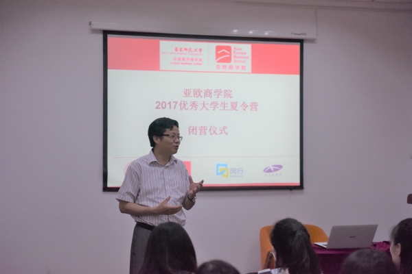 闭营仪式上,亚欧商学院中方院长何佳讯教授语重心长地寄语同学们,希望他们能够在未来的学研生活中做到三个“一”:“表里如一”,真诚为人,做真实的自己;“知行合一”, 用理论联系实践,学会解决实践问题;“九九归一”,通过找到自己的事业,实现人生幸福感,以长远的人生目标引领眼前行动。