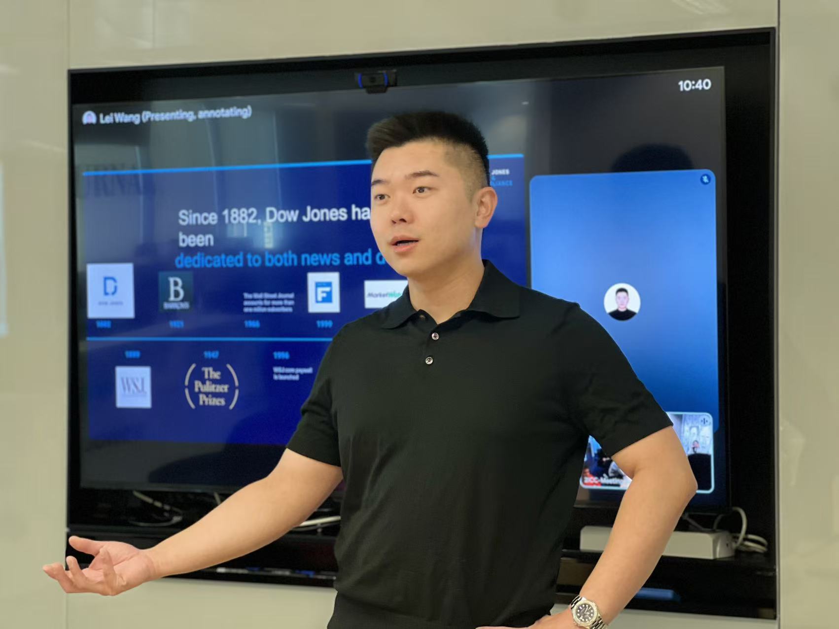 The most intense takeaway from today’s visit to Dow Jones was the sheer presence of this financial behemoth. Lei Wang walked us through what felt like “a chess game you can’t lose”—a fully established, refined system for financial information and consulting that’s already proven its mettle. One line from Mr. Wang really stuck with me: “A successful product has to drive repeat purchases; it needs to turn a slice of the customer’s revenue into ours.”