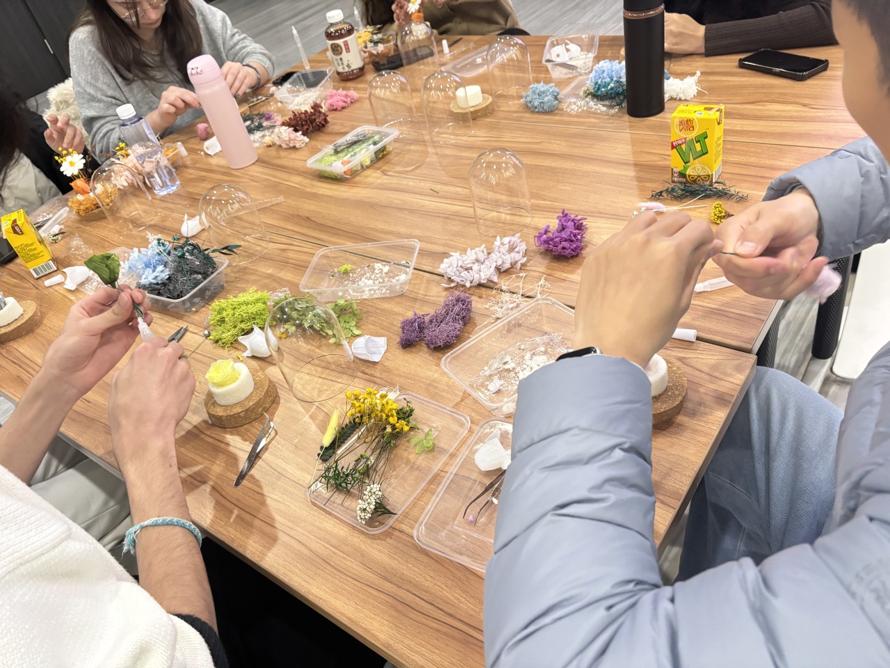 The afternoon began with a preserved flower DIY session. Seated around the tables, every participant became a messenger of spring, weaving unique and heartwarming spring memories. With roses, hydrangeas, billy balls and other blooms in hand, they focused on arranging the flowers with care. Gentle conversations blended with the delicate fragrance of preserved flowers, as these vibrant creations were placed into transparent glass domes, becoming timeless and precious memories.